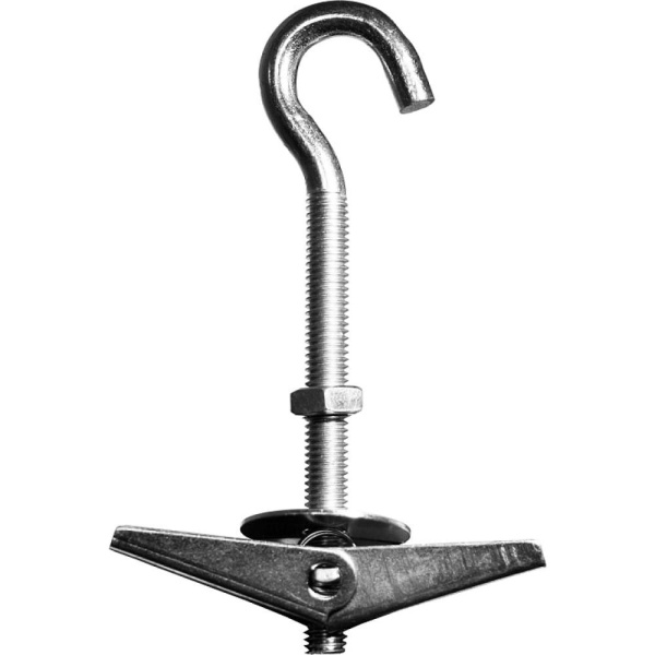 Конструктивной особенностью самоустанавливающегося дюбеля является наличие раскладных опорных элементов и длинной резьбовой шпильки, оснащенной крюком для оптимизации процессов монтажа.